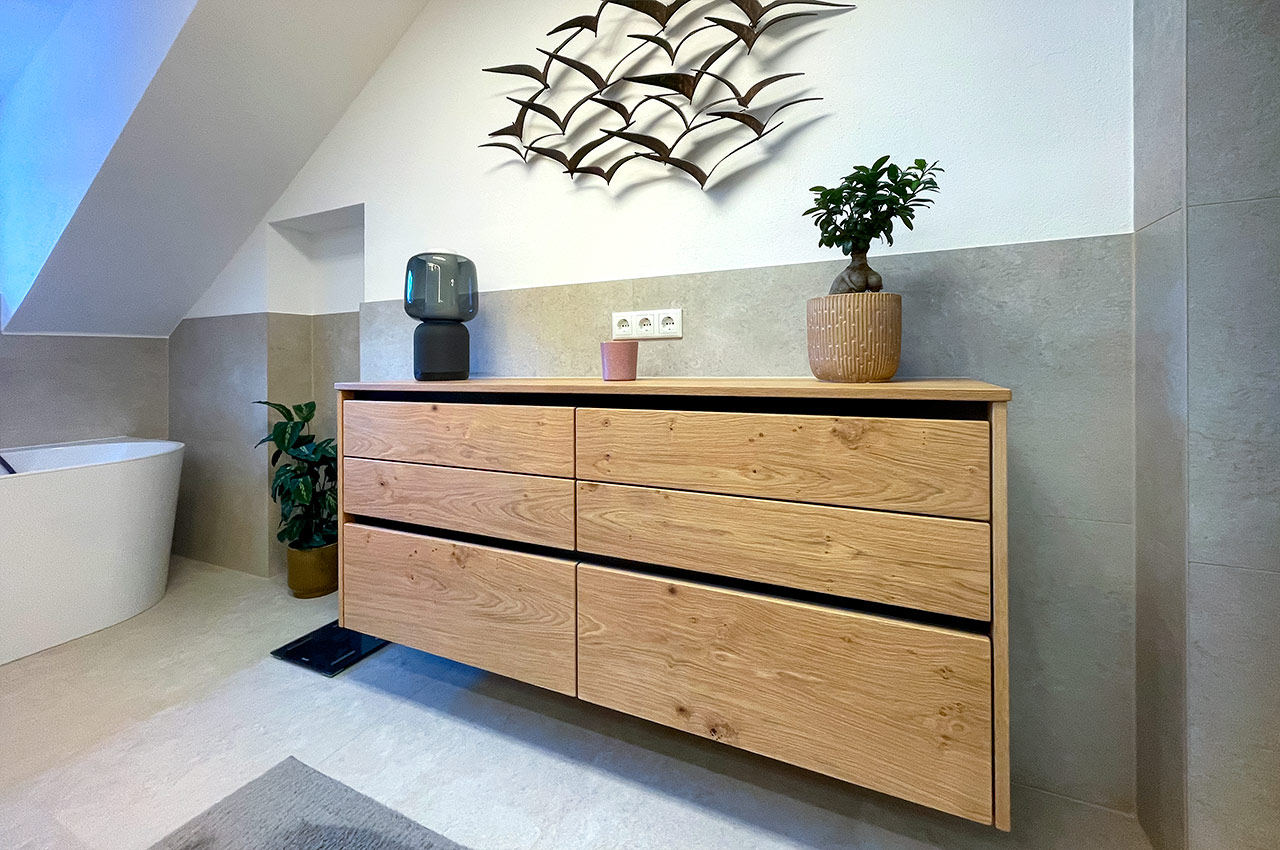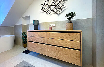 Entdecken Sie formvollendete Schränke mit pfiffigem Innenleben für Handtücher und vieles mehr. Wir freuen uns auf ein Beratungsgespräch mit Ihnen, ob bei uns im Schauraum oder bei Ihnen Zuhause, dass überlassen wir ganz Ihren Wünschen.